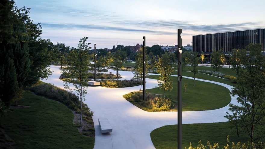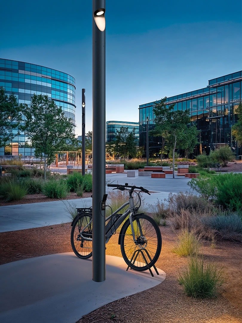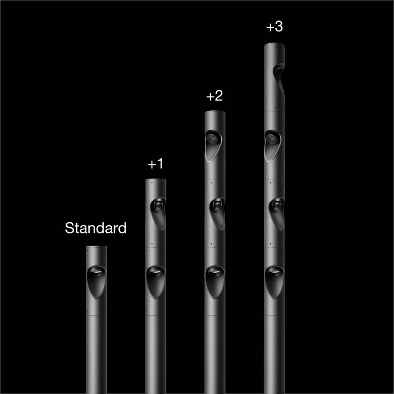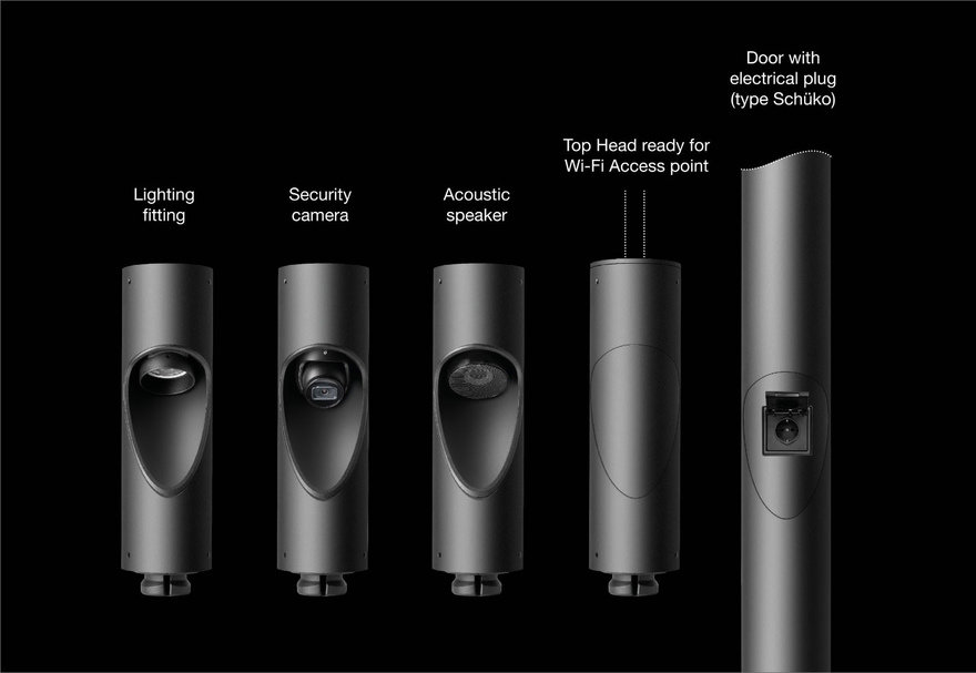 This nifty Shift Pro is by Simes, an Italian manufacturer of outdoor lighting. It's essentially a weatherproof, modular pole system that can be used to host lighting, cameras, speakers, Wi-Fi transmitters and power sockets.